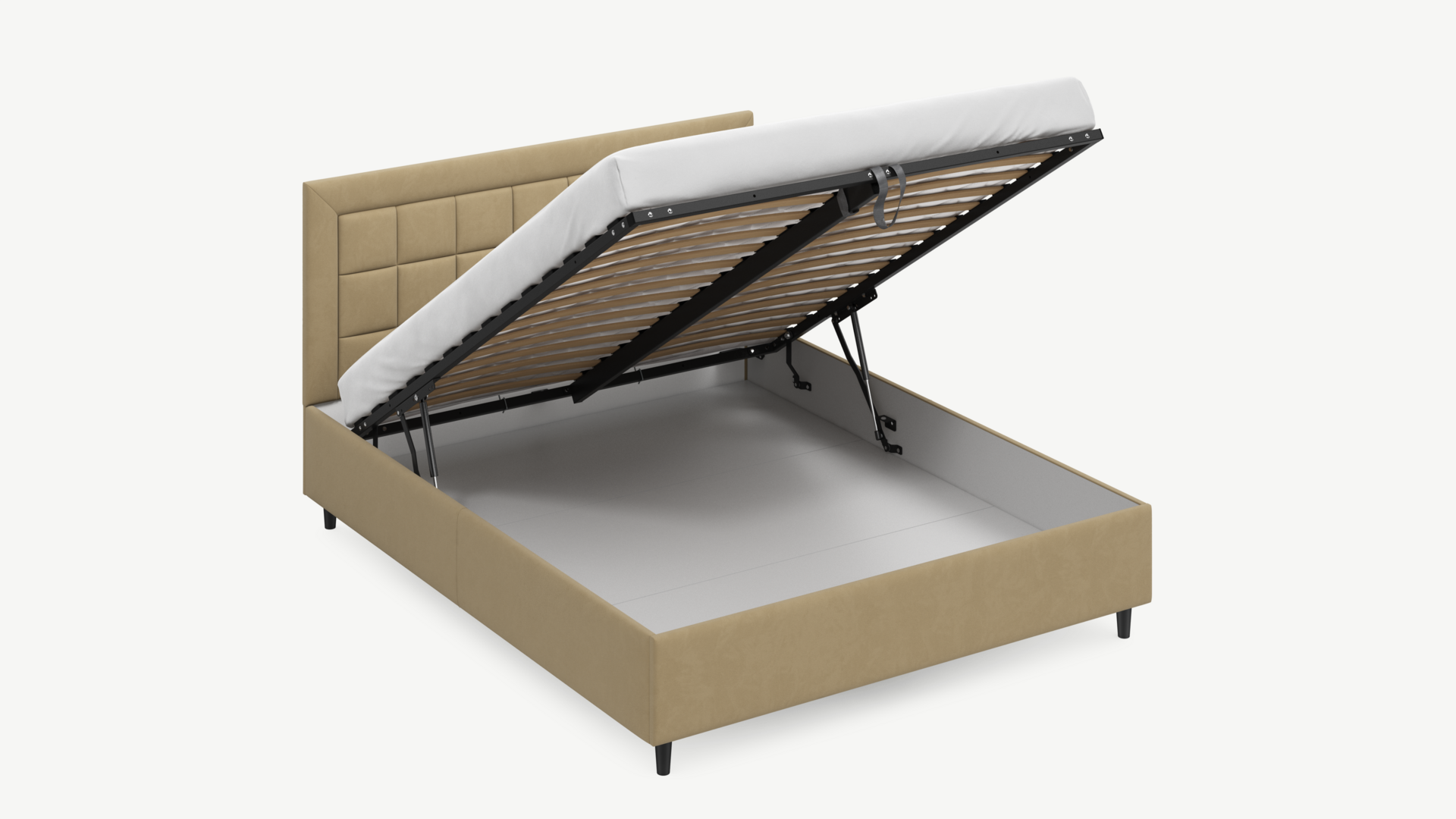 • Скрытая под основанием вместительная емкость без внутренних перегородок позволяет использовать всю площадь подкроватного пространства для хранения вещей.
