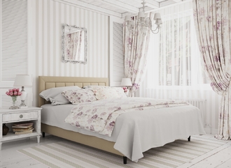 Фактура обивочного материала подбирается дизайнерами с учетом технологических и стилевых особенностей кровати.