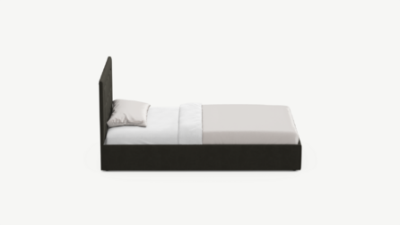 Фактура обивочного материала подбирается дизайнерами с учетом технологических и стилевых особенностей кровати.