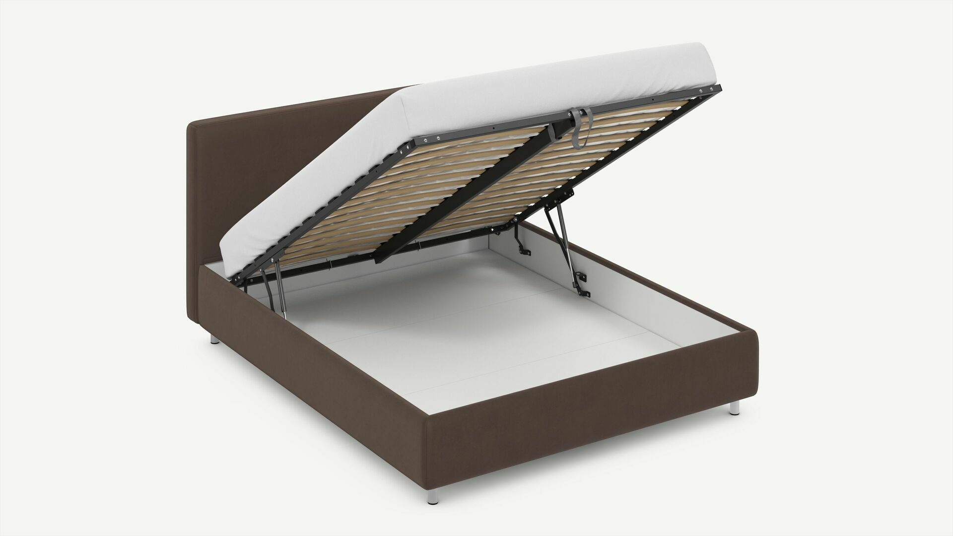 - Скрытая под основанием вместительная емкость без внутренних перегородок позволяет использовать всю площадь подкроватного пространства для хранения вещей.