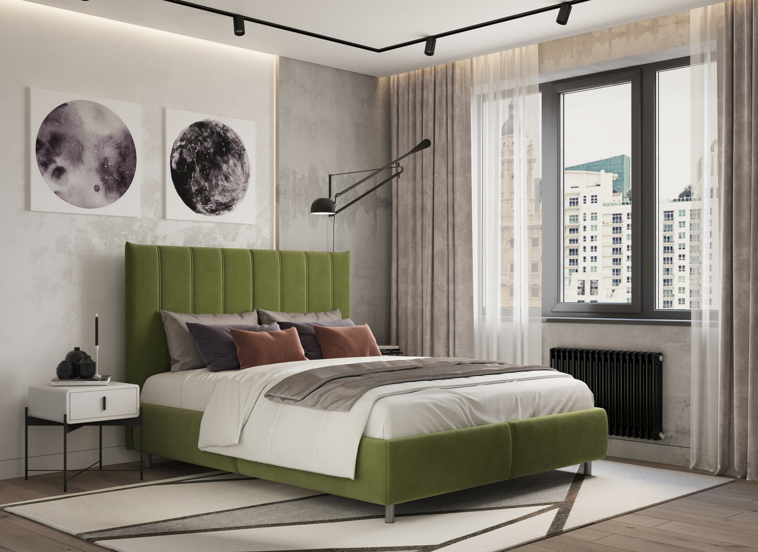 Изголовье кровати MOON 1161 смотрится дорого и стильно. Особенностью данной модели является изголовье, оформленное вертикальными полосами, которое не только придаёт кровати современный вид, но и визуально увеличивает пространство, добавляя в вашу спальню эффект высоты и лёгкости.