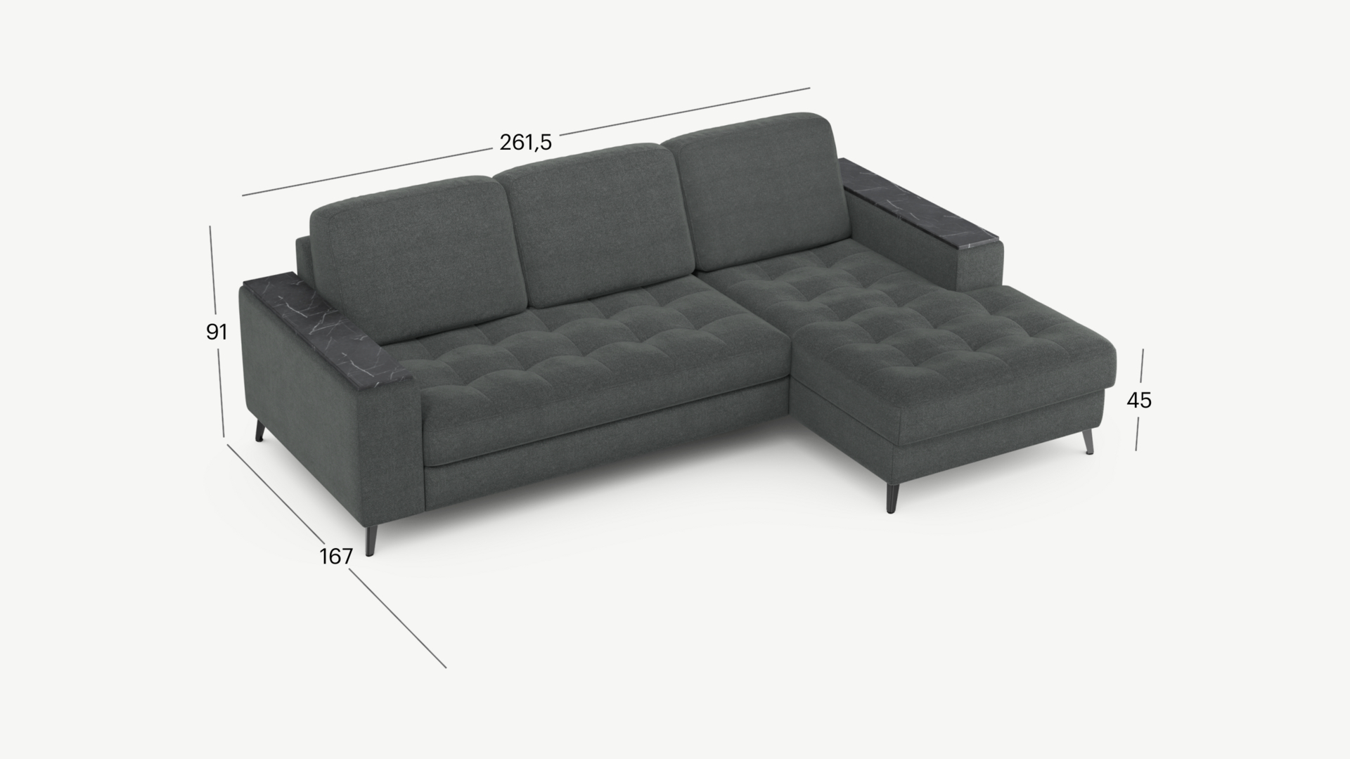 261.5x167x91 см